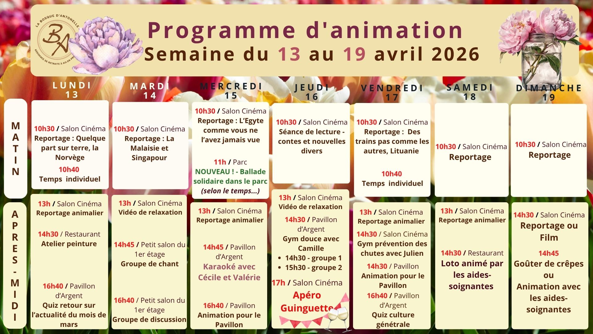 La maison de retraite a également la chance d’accueillir chaque semaine l’office religieux ainsi que Bruno et Fred qui font toujours preuve de malice et de dynamisme lors des séances de gymnastique douce.